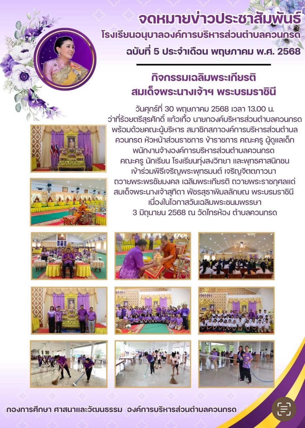 กิจกรรมเฉลิมพระเกียรติ สมเด็จพระนางเจ้าฯ พระบรมราชินี วันศุกร์ที่ 30 พฤษภาคม 2568 เวลา 13.00 น. ว่าที่ร้อยตรีสุรศักดิ์ แก้วเกื้อ นายกองค์บริหารส่วนตำบ...