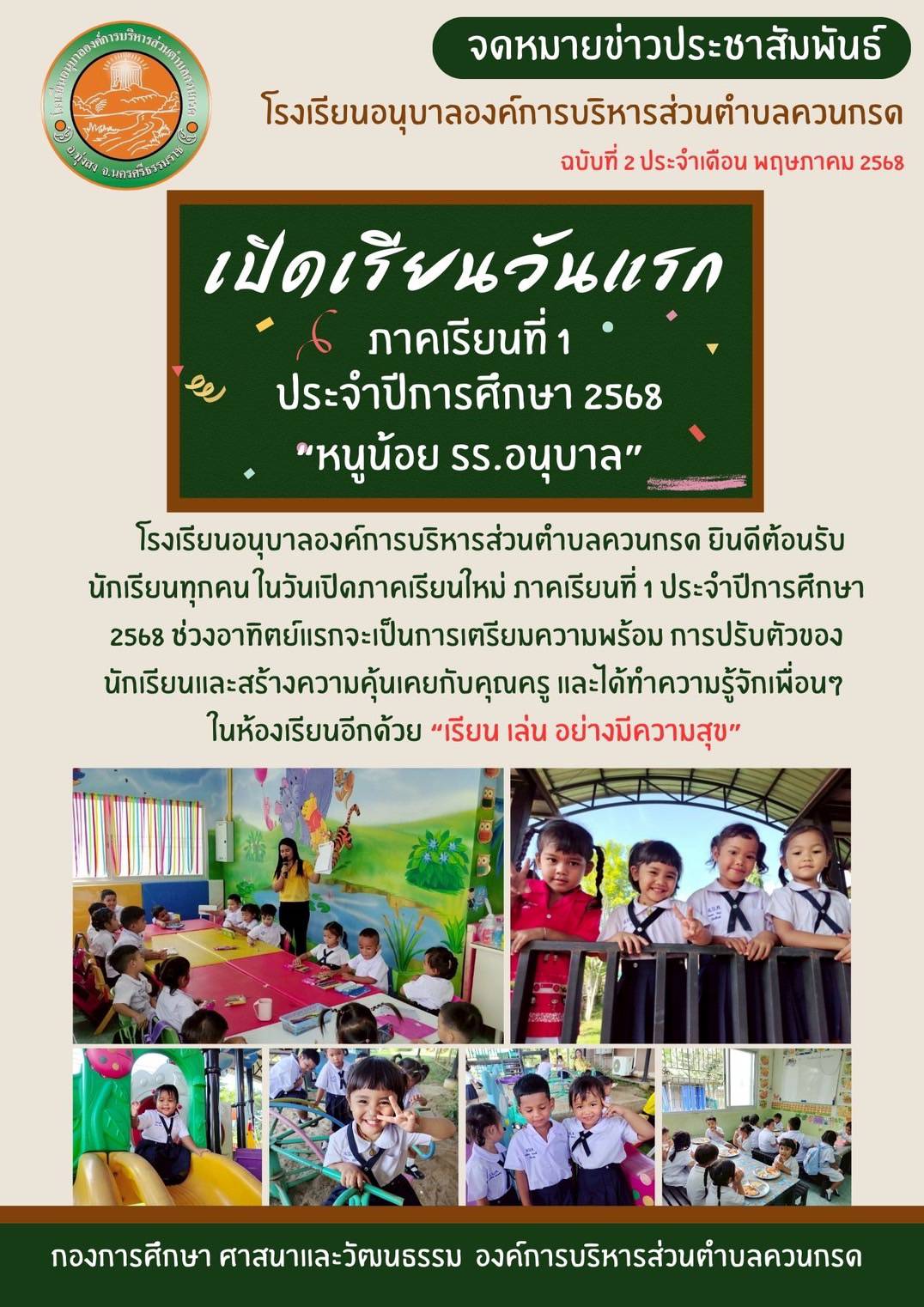 โรงเรียนอนุบาลองค์การบริหารส่วนตำบลควนกรด ยินดีต้อนรับ นักเรียนทุกคนในวันเปิดภาคเรียนใหม่ ภาคเรียนที่ 1 ประจำปีการศึกษา 2568 ช่วงอาทิตย์แรกจะเป็นการเต...
