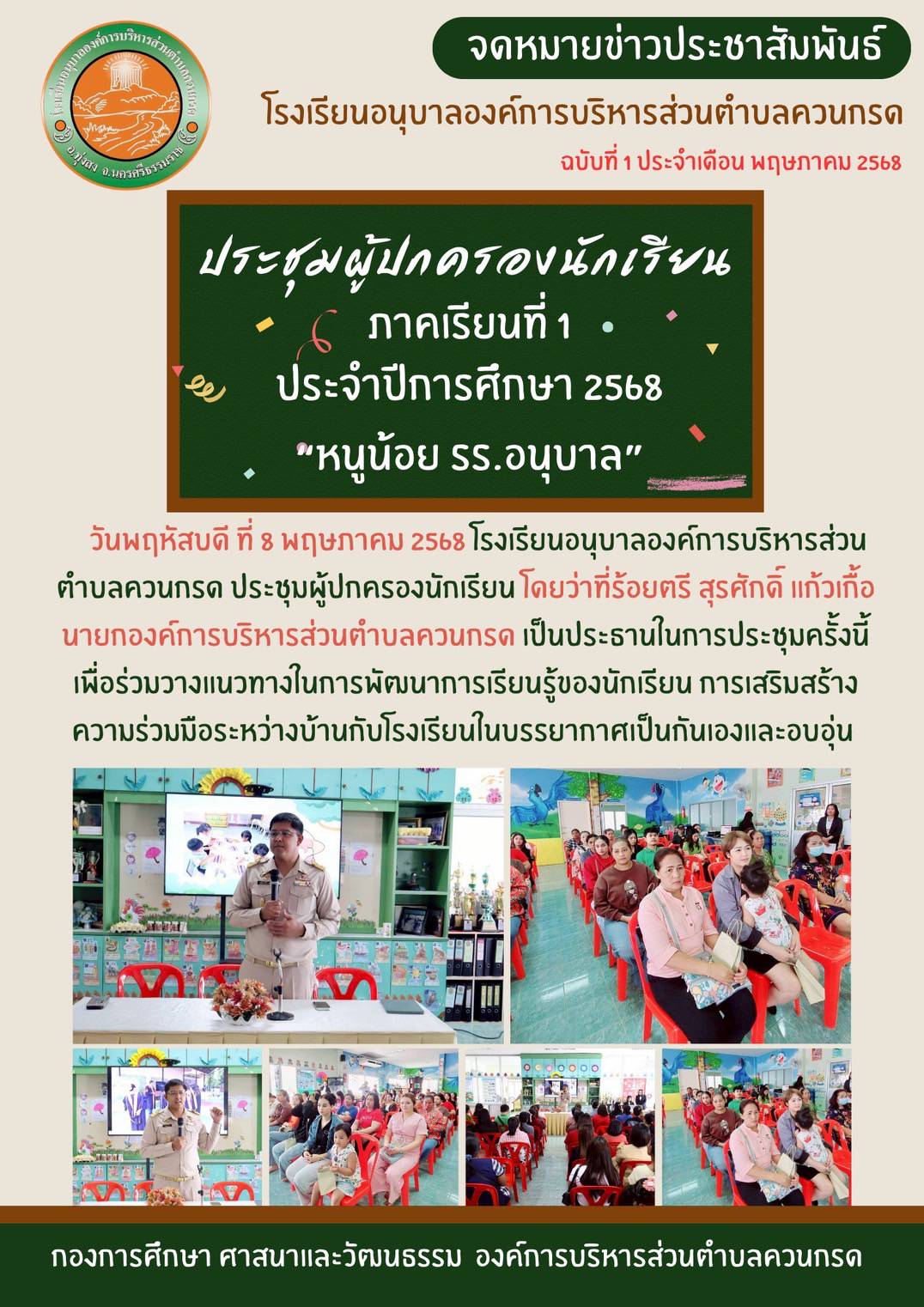 วันพฤหัสบดี ที่ 8 พฤษภาคม 2568 โรงเรียนอนุบาลองค์การบริหารส่วน ตำบลควนกรด ประชุมผู้ปกคครองนักเรียน โดยว่าที่ร้อยตรี สุรศักดิ์ แก้วเกื้อ นายกองค์การบริ...