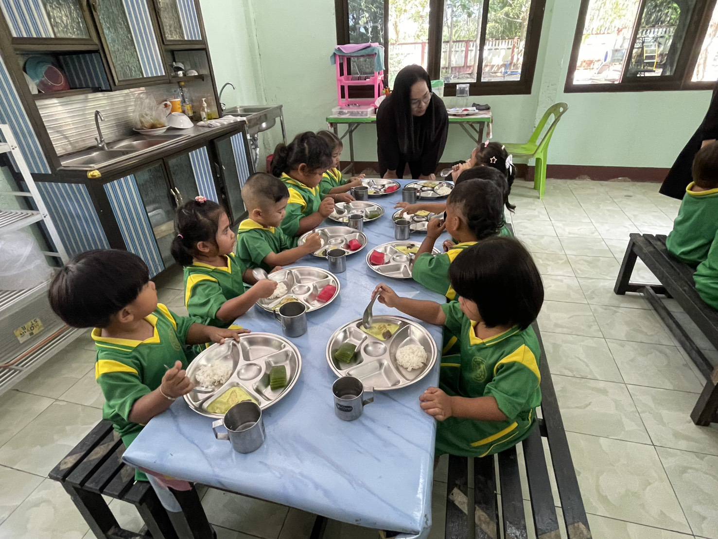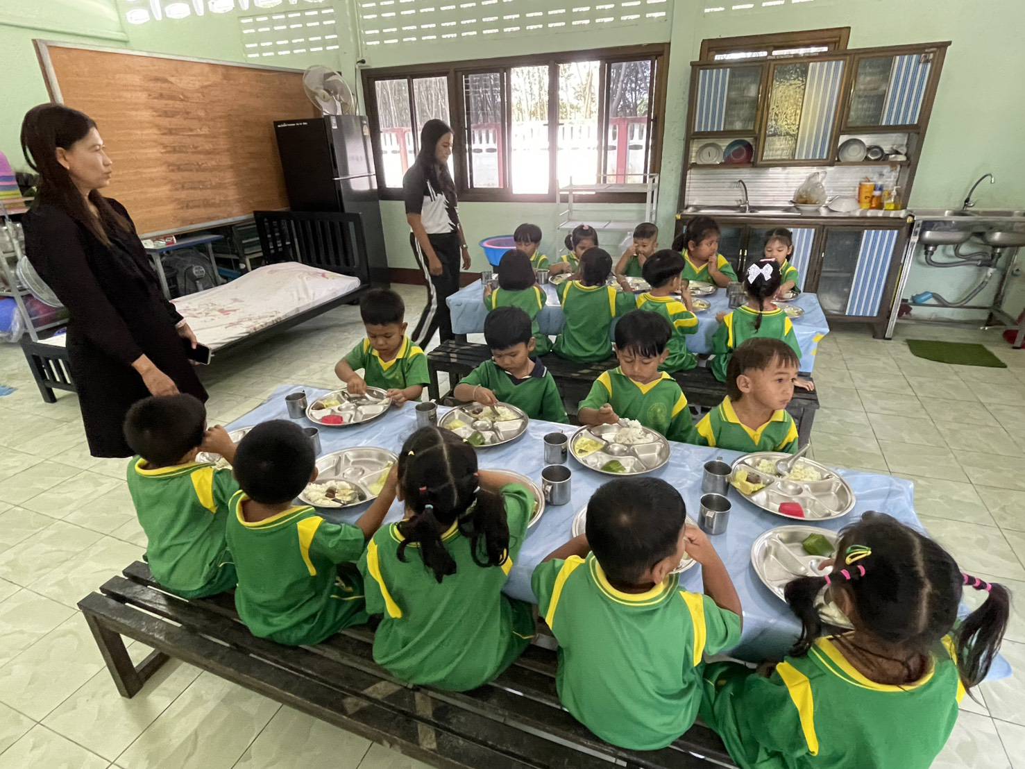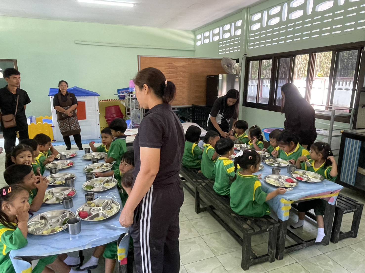 คณะกรรมการตรวจสอบคุณภาพอาหารกลางวันในสถานศึกษา องค์การบริหารส่วนตำบลควนกรด ลงพื้นที่ติดตามโครงการอาหารกลางวัน ศูนย์พัฒนาเด็กเล็กบ้านวัดใหม่