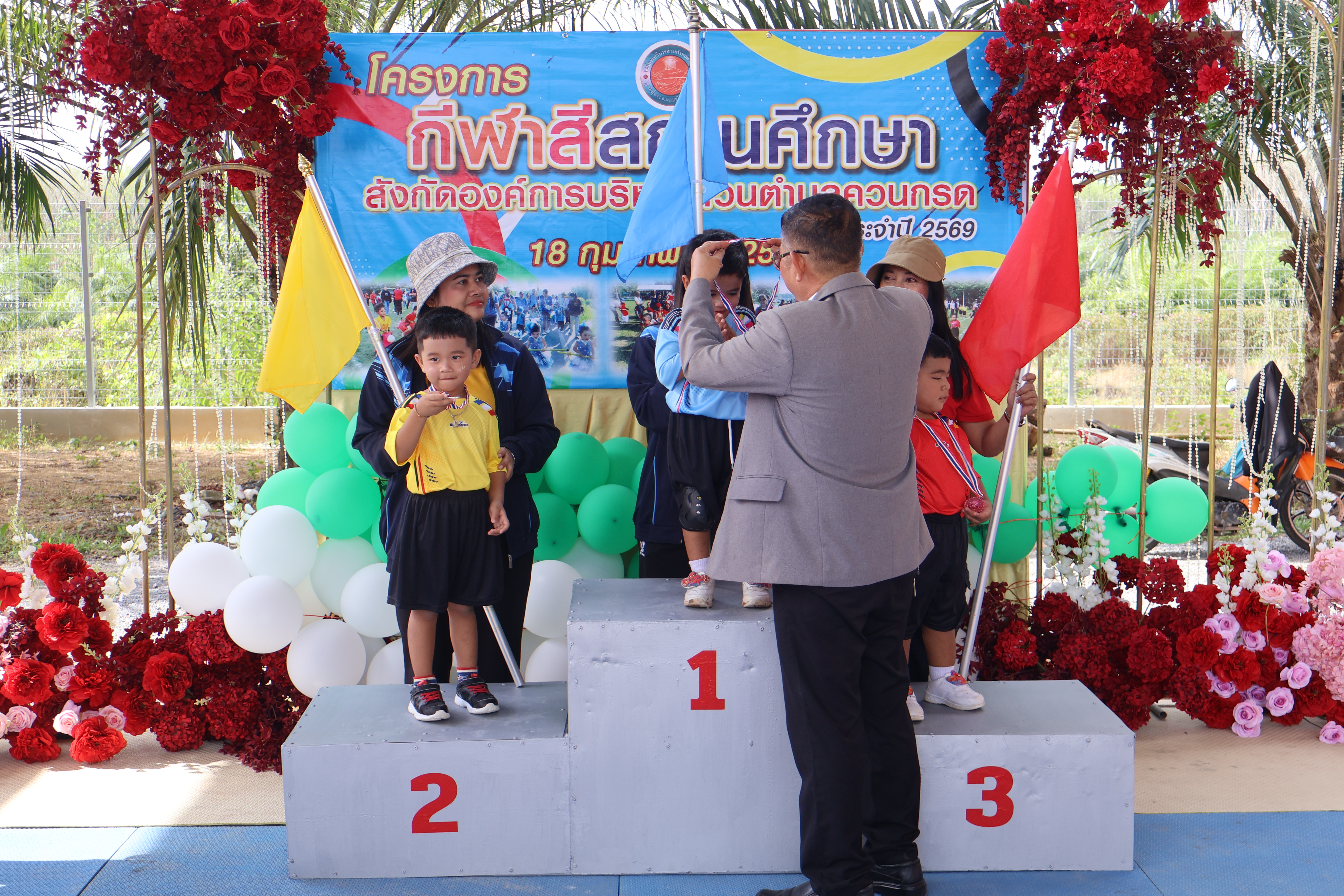 โรงเรียนอนุบาลองค์การบริหารส่วนตำบลควนกรดและศูนย์พัฒนาเด็กเล็กสังกัดองค์การบริหารส่วนตำบลควนกรด ดำเนินการจัดโครงการกีฬาสีสถานศึกษาสังกัดองค์การบริหารส่วนตำบลควนกรด ประจำปี 2569 ของสถานศึกษาสังกัดองค์การบริหารส่วนตำบลควนกรด ในวันพุธที่ 18 กุมภาพันธ์ 2569 นางสารภี โชติพันธ์ ปลัดองค์การบริหารส่วนตำบล รักษาการนายกองค์การบริหารส่วนตำบลควนกรด ประธานเปิดโครงการ พร้อมด้วยแขกผู้มีเกียรติเข้าร่วมกิจกรรม