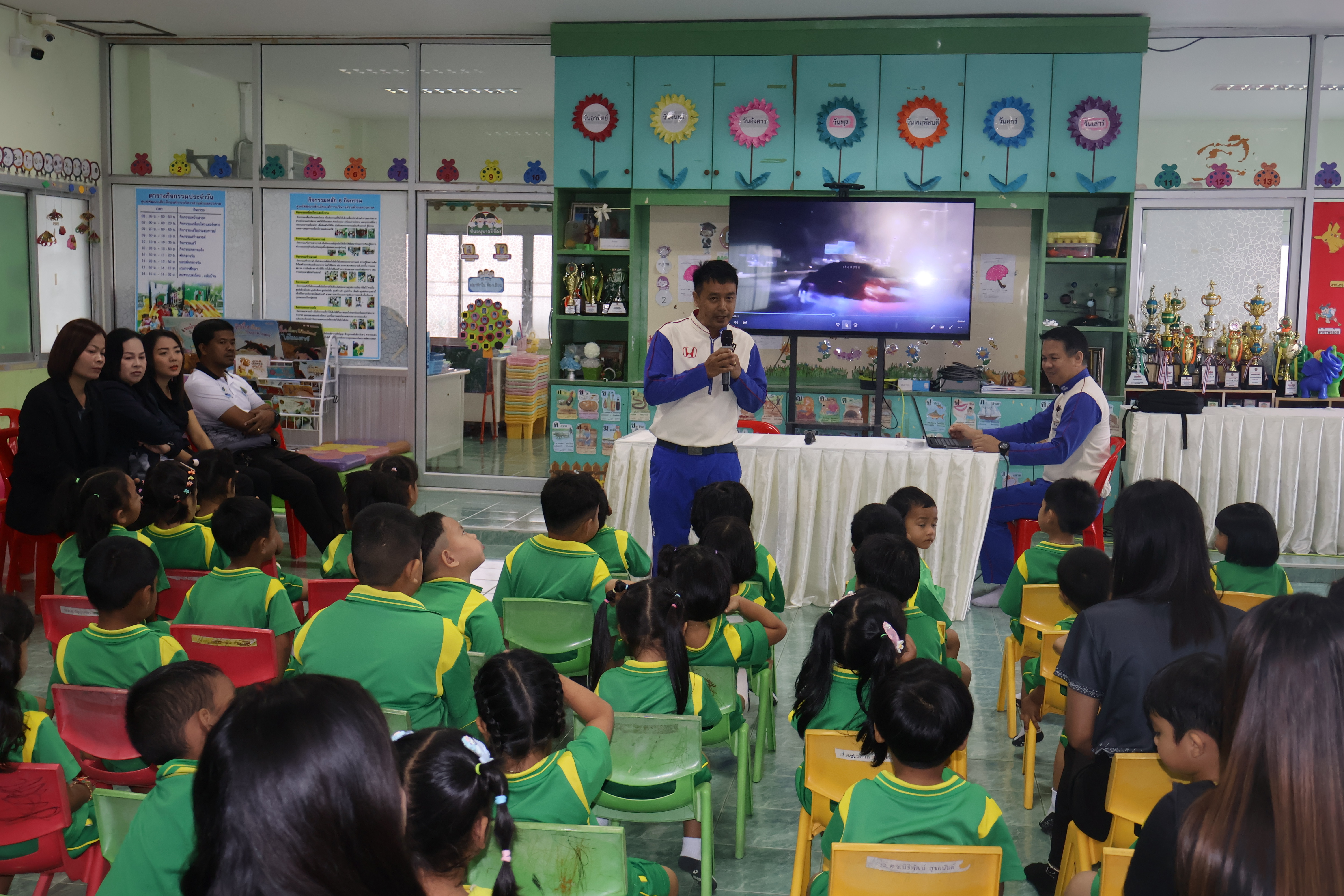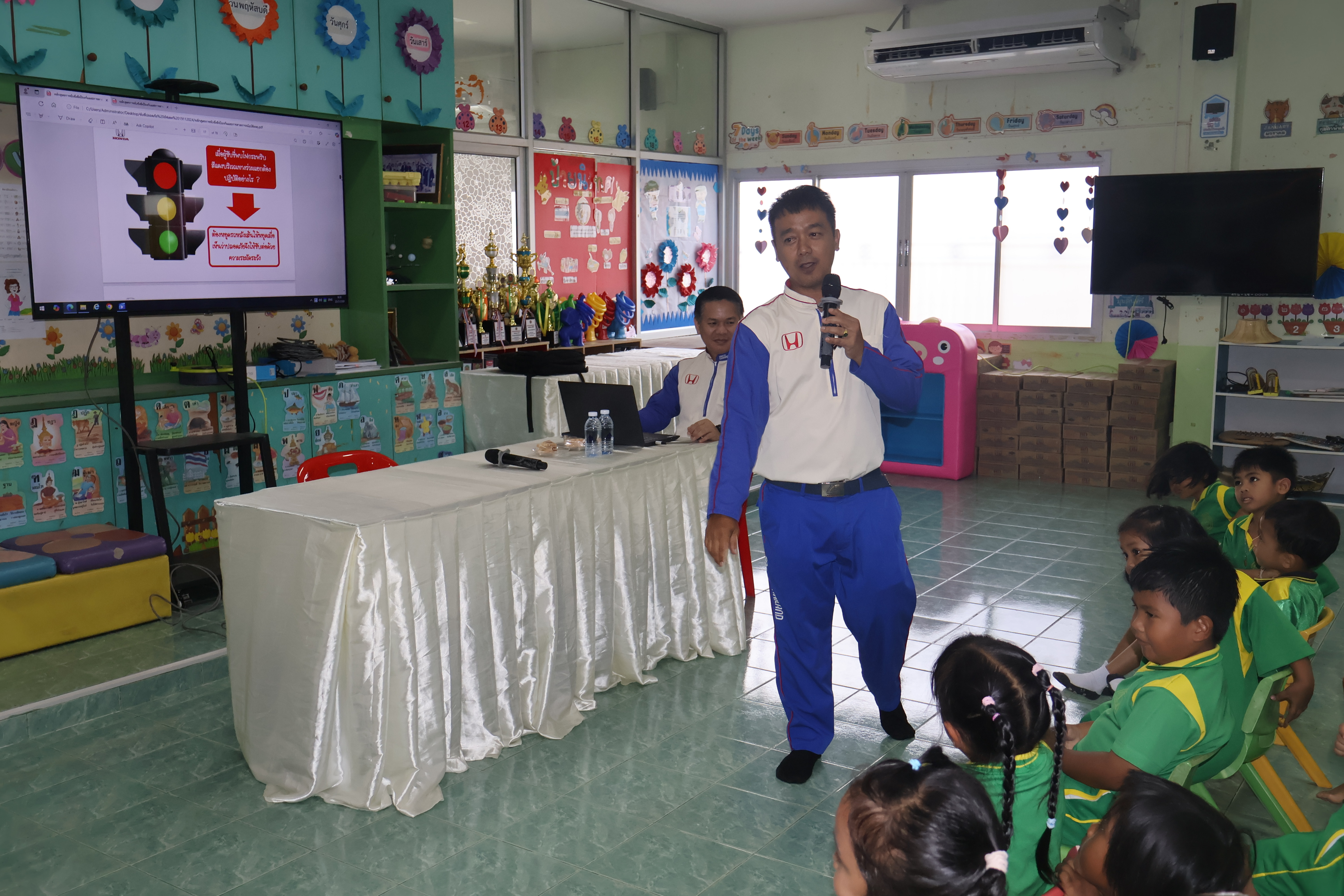 ขับขี่ปลอดภัยไปกับฮอนด้า นายจรูญ รัตนบุรี นายกองค์การบริหารส่วนตำบลควนกรด มอบหมาย นางสาวมณีรัตน์ ทรงทอง เลขานุการนายกองค์การบริหารส่วนตำบลควนกรด พร้อมด้วย นางพิมพ์พร รุ่งเมือง ผู้อำนวยการกองการศึกษา ศาสนาและวัฒนธรรม และ นายวีรเชษฐ์ รัตนคช นักวิชาการศึกษา บุคลากรทางการศึกษา ร่วมกิจกรรมขับขี่ปลอดภัยไปกับฮอนด้า โดยให้ความรู้เกี่ยวกับ - รู้จักการเอาตัวรอดเมื่อติดอยู่ในรถ - เรียนรู้ในเรื่องของไฟสัญญาณจราจร ป้ายจราจร - การข้ามถนน - โดยมีนักเรียนจากศูนย์พัฒนาเด็กเล็กสังกัดองค์การบริหารส่วนตำบลควนกรด เข้าร่วมโดยพร้อมเพรียงกัน วันที่ 25 มีนาคม 2569 เวลา 09.00 น.ณ ศูนย์พัฒนาเด็กเล็กองค์การบริหารส่วนตำบลควนกรด
